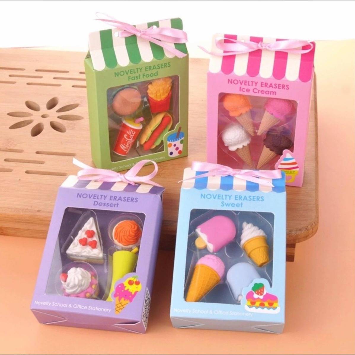 Además, vienen en una cajita con un lazo que los hace aún más especiales. Ya sea que los quieras para uso personal o para regalar, nuestros borradores en forma de comida serán una deliciosa sorpresa para cualquier ocasión.