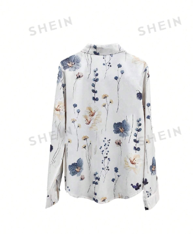 Camisa manga larga y diseño de flores estilo europeo para mujer
