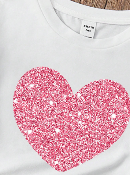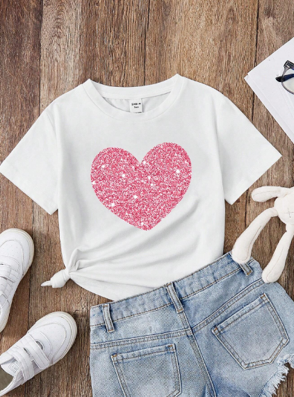 Camiseta Casual De Manga Corta Con Estampado De Corazón Para Chicas Adolescentes