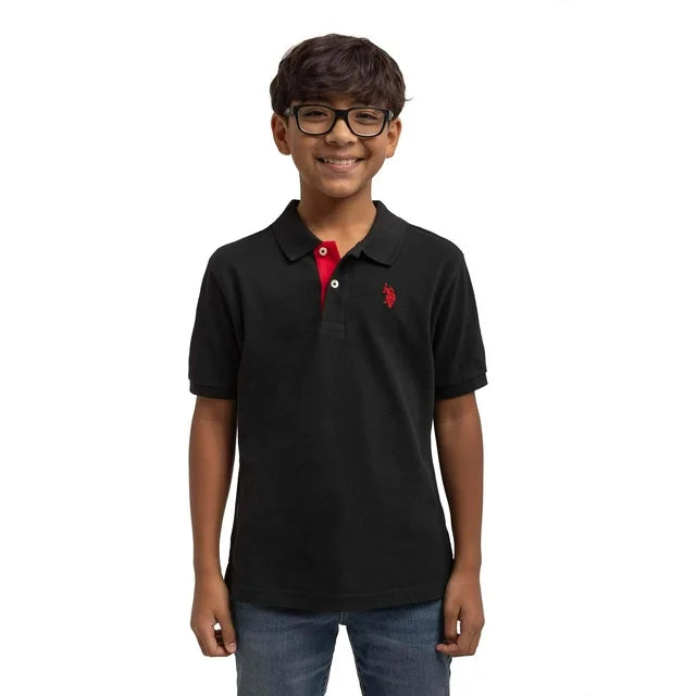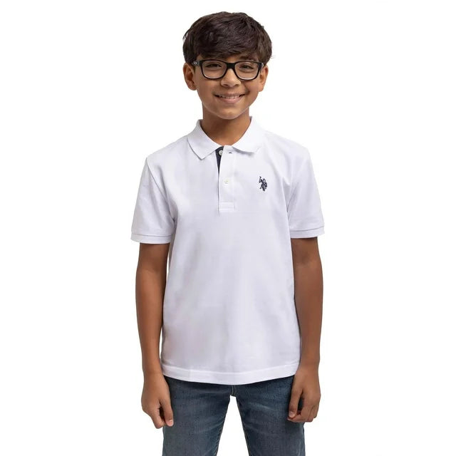 Estos polos suaves y fáciles de usar vienen en colores clásicos y son la solución sencilla para los problemas de vestimenta matinal de tu pequeño. Combínalo con jeans, pantalones cortos o pantalones caqui y estará listo para ir a la escuela o jugar. Con una suave tela de algodón, querrá usarlos todos los días. Aprox. largo desde el hombro hasta el dobladillo: 23" Ajuste clásico Mangas cortas Cuello plegable Aberturas laterales en el dobladillo Presenta bordado U.S. Polo Assn. logotipo en el pecho izquierdo 100% algodón Tapeta frontal de dos botones con colores contrastantes. Lavable en la lavadora Importado Asociación de Polo de EE. UU. Polo de piqué para niño