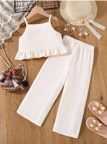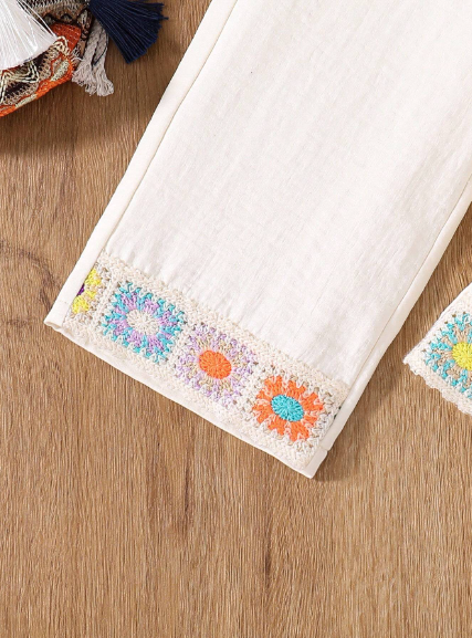 Conjunto de 2 piezas para niña blusa bordada y panatlon con borde bordado.