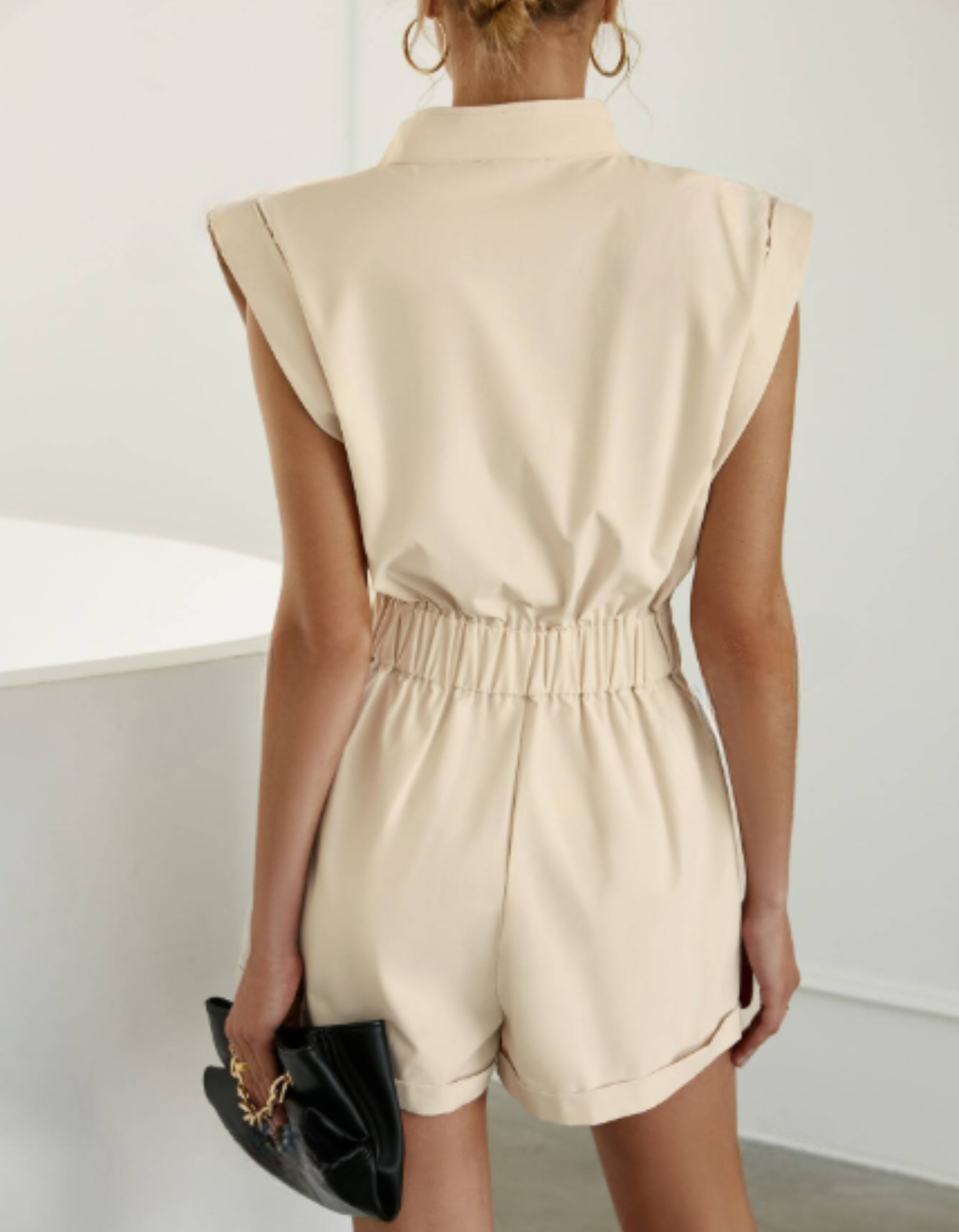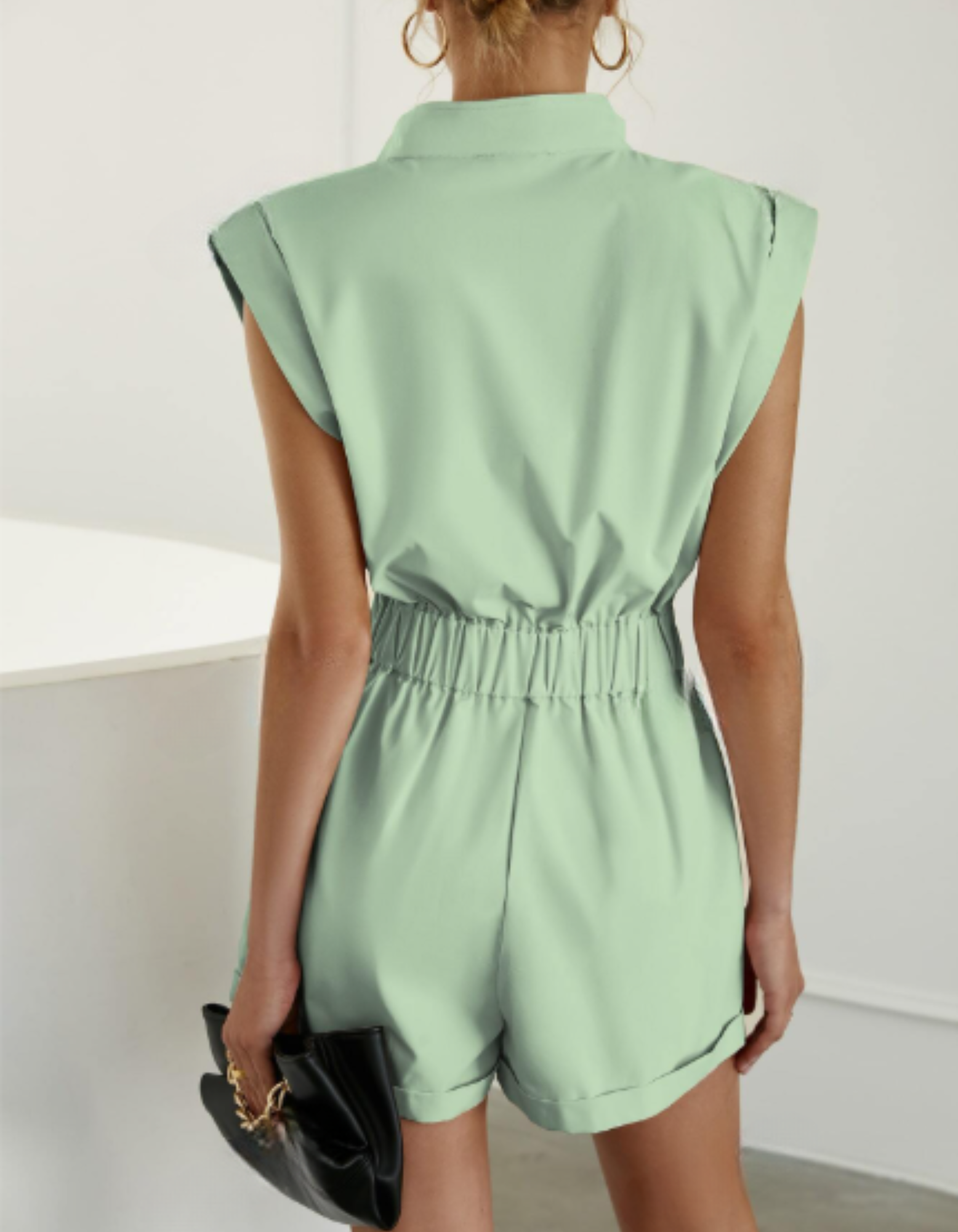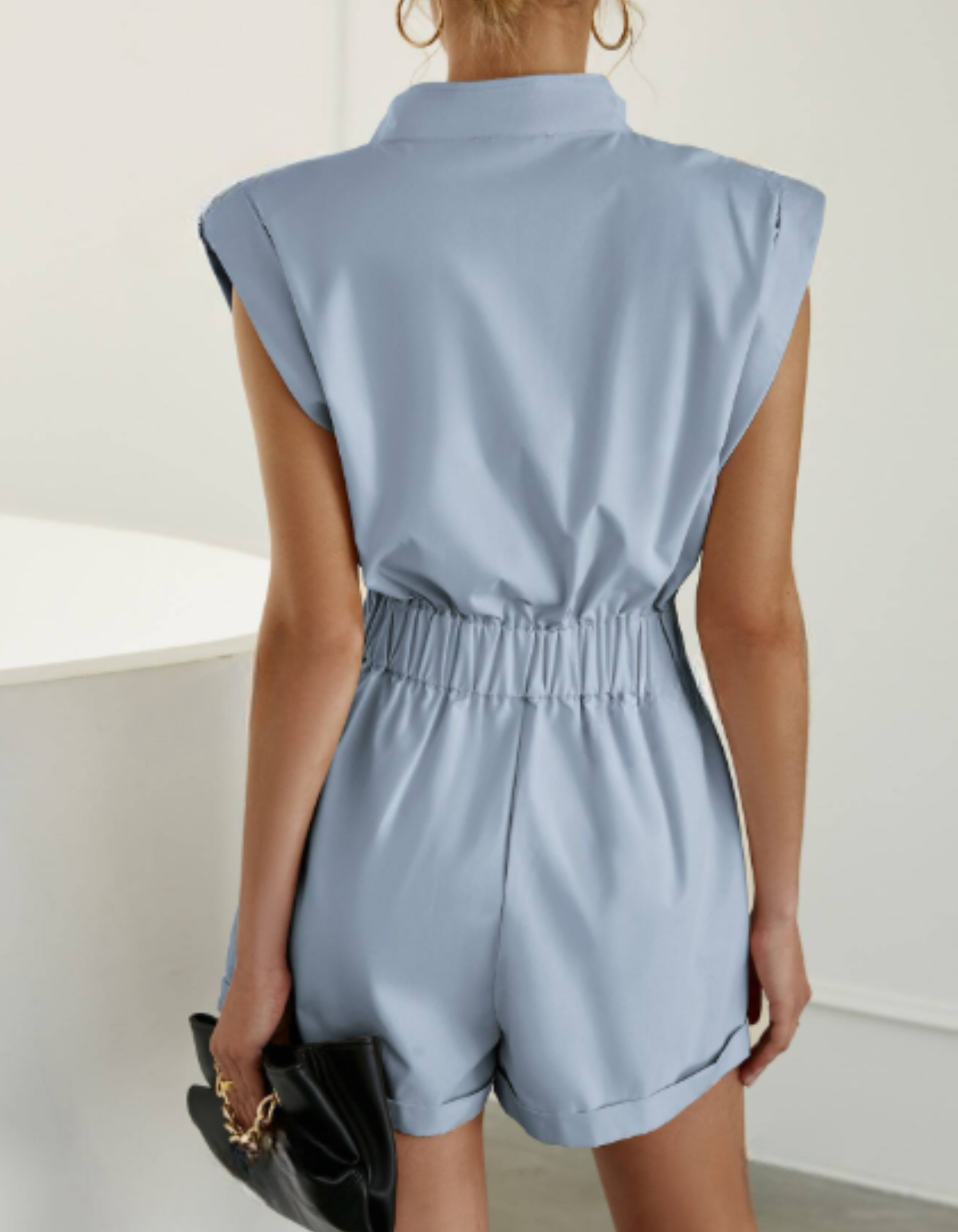 Enterizo corto com cremallera delantera bolsillos y solapa de mujer