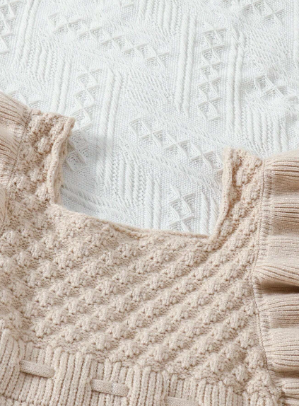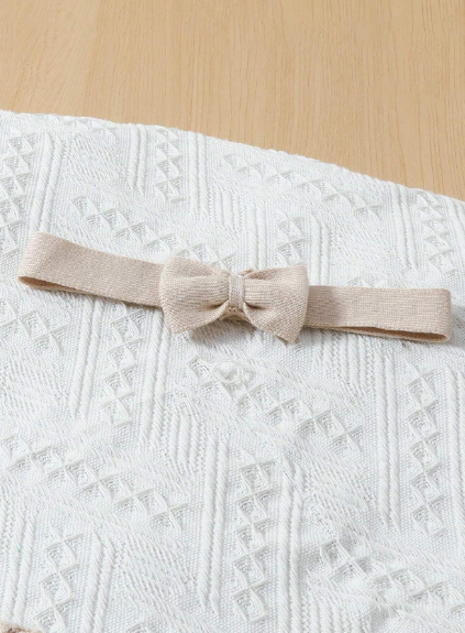 Enterizo de bebe niña tejido con volantes y lazo para el cabello color nude