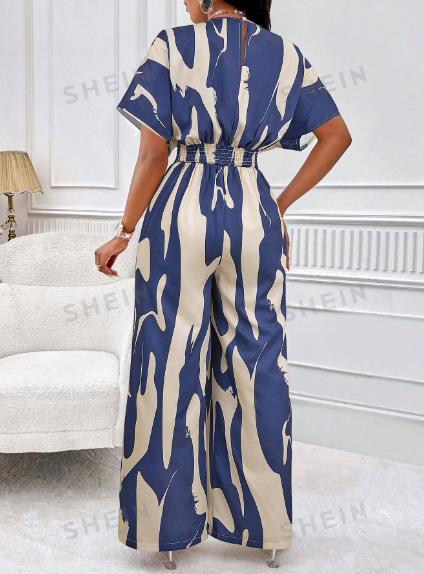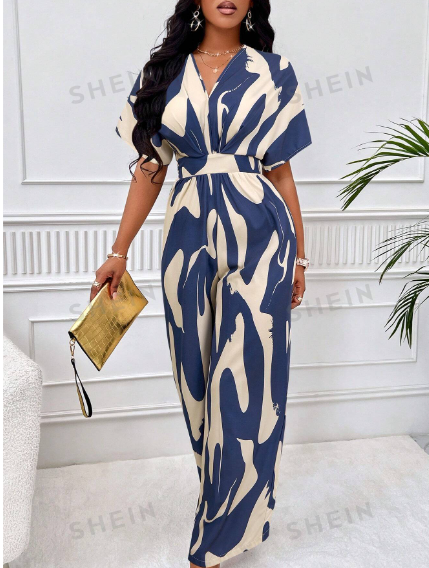 Enterizo para mujer con estampado de manga murciélago con cinturón