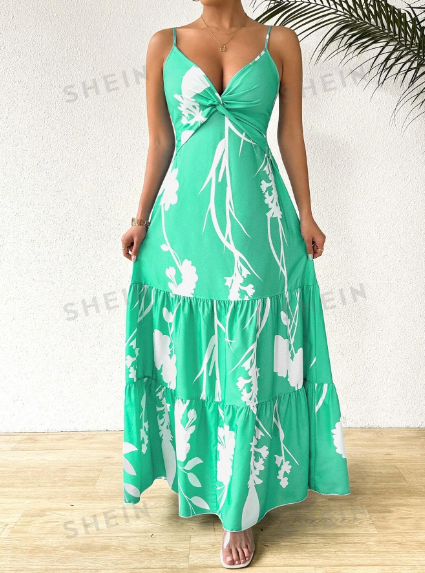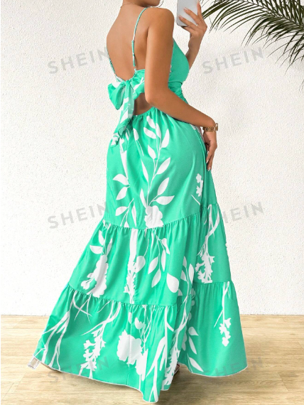 Maxi Dress estampado floral con diseño de amarre en la espalda para dama