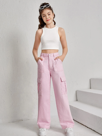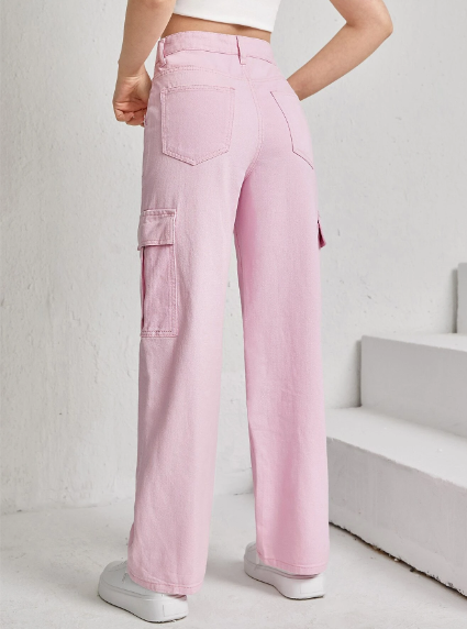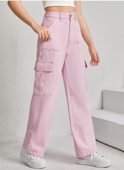 Color: Rosa Pálido Tipo de Estampado: Liso Tipo: Pierna recta Tipo de cierre: cremallera