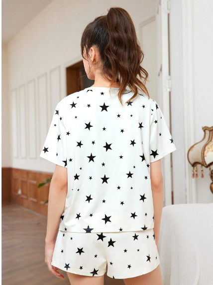 Color: Blanco Estilo: Dulce, Informal Tipo de estampado: Geométrico, todo estampado Tipo: Conjunto de pantalones cortos Escote: cuello redondo Longitud de las tapas: Normal Pantalón Longitud: Corto Tops Longitud de la Manga: manga corta Tejido: Elástico Ligero Instrucciones de Cuidado: Lavado a máquina, no limpiar en seco, lavar con un detergente suave Material de Tops y Pantalón: Tela tejida Tops y Pantalón Composición: 95% Poliéster, 5% Elastano Transparente: No