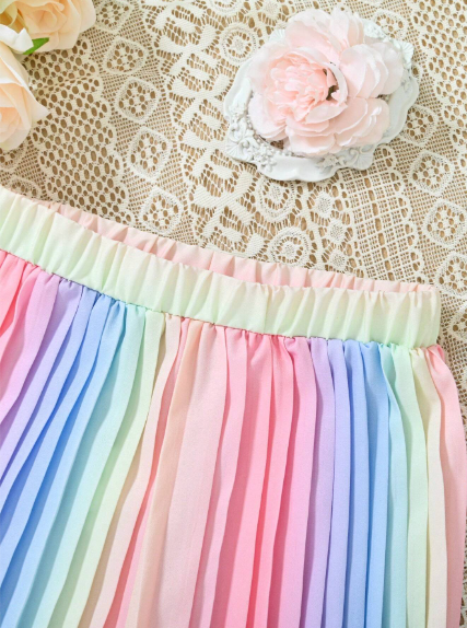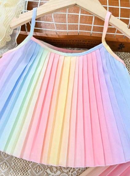 Set de 2 piezas para chicas adolescentes con top de tirantes plisado y pantalones degradé