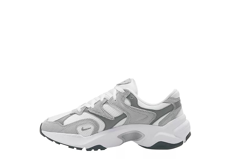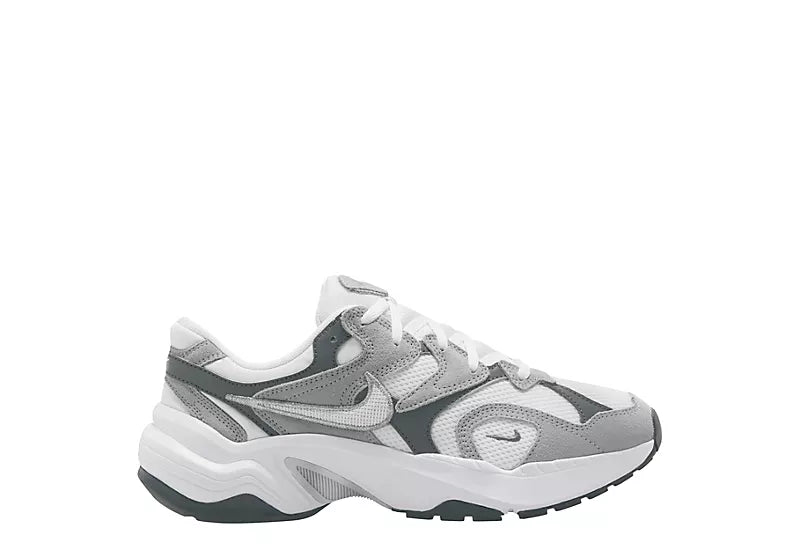 Cambia el guión, pero mantén tu estilo de la vieja escuela con las zapatillas AL8 para mujer de Nike. Con una parte superior de malla y gamuza transpirable con cuello y lengüeta acolchados para mayor comodidad, este zapato con cordones tiene una entresuela de espuma gruesa para un estilo moderno. La plantilla amortigua cada paso, mientras que la suela ofrece una tracción duradera. Parte superior de malla/ante Cierre con cordones Parachoques en los dedos Plantilla acolchada Suela de tracción