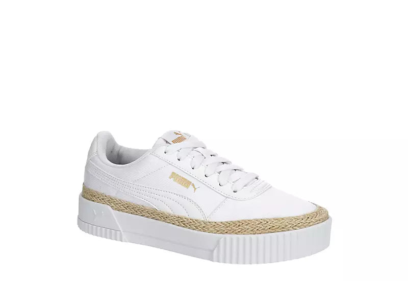 Te verás increíble cuando termines tu conjunto con la zapatilla Carina Espadrille para mujer de PUMA. Este diseño elegante y moderno tiene una suela gruesa de goma vulcanizada y una construcción de lona y gamuza con ribete de alpargata alrededor de la entresuela, lo que le brinda un estilo de la vieja escuela que es innegablemente genial. Parte superior de lona/ante Cierre con cordones Plantilla SoftFoam+ Entresuela de plataforma Suela de caucho vulcanizado