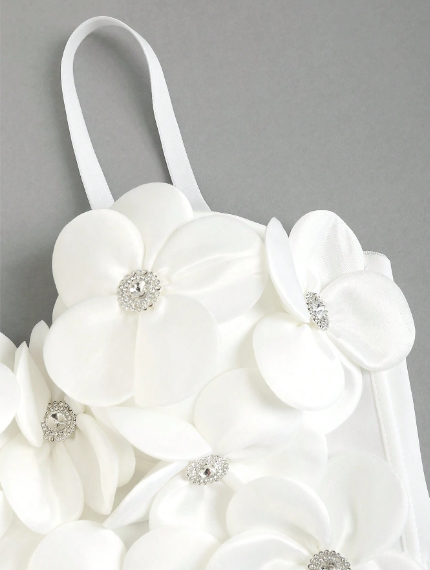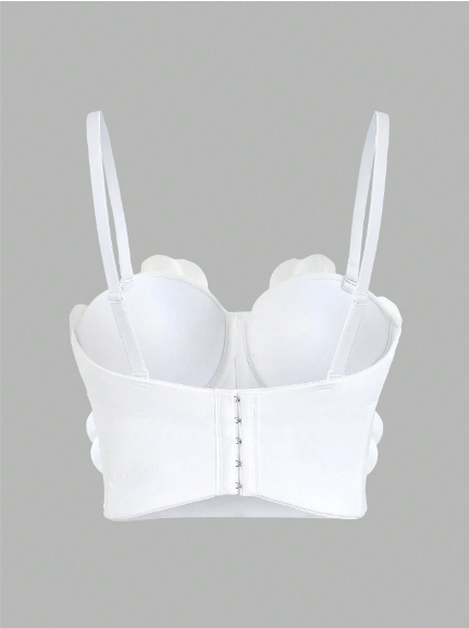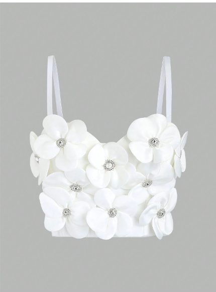 Top con aplique de flores y brillantes color blanco para mujer
