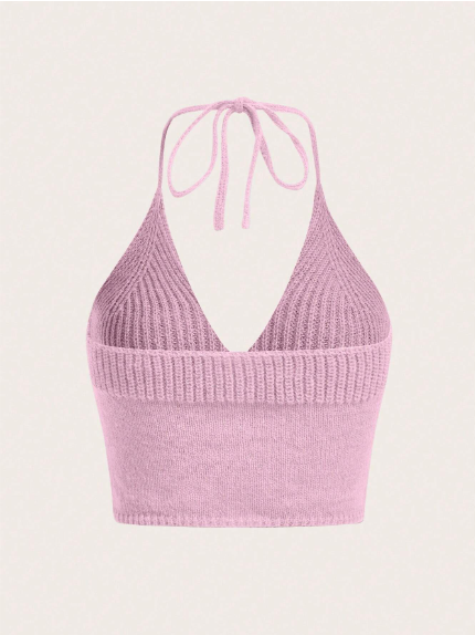 Color: Rosa Estilo: Casual Tipo de Estampado: Geométrico Escote: Halter Detalles: