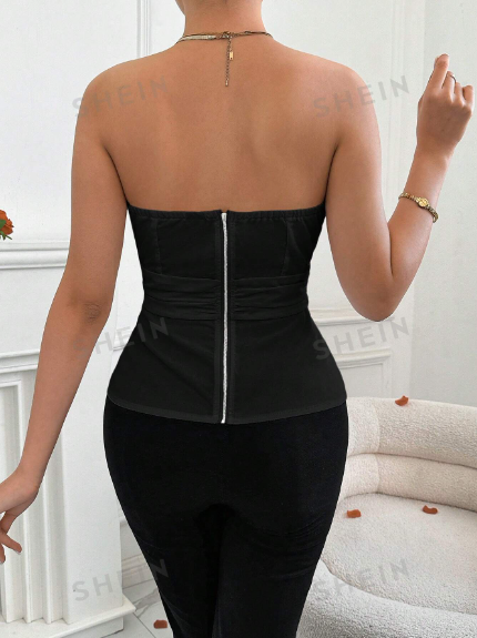 Top Sin Tirantes De Diseño Sólido Con Diseño Recogido Y Con Un Sentido De La Moda