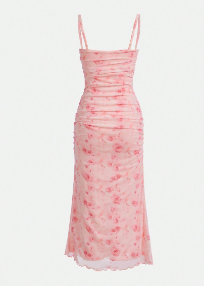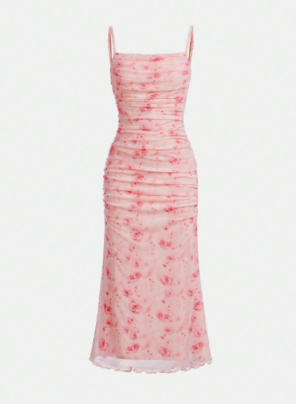 Vestido De Tirantes Con Plisado De Tull Y Estampado De Flores Para Adolescentes