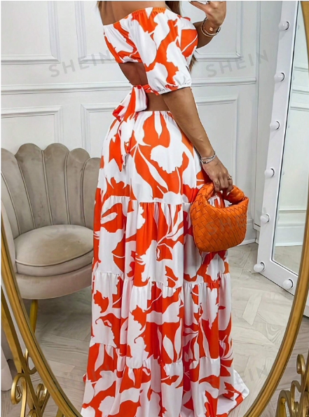 Luce sexy y elegante con este hermoso diseño ideal para el verano, un Vestido estampado floral fresco y veraniego, el escote en la espalda te hará lucir cómoda y hermosa, compra Online shein desde Colombia, sin impuestos, sin uso de tarjetas, sin preocuparte por envíos!