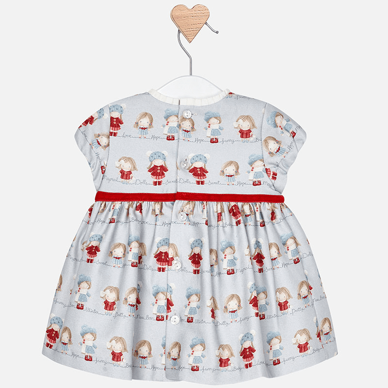 ¡El vestido perfecto para tu pequeña muñequita! Este hermoso vestido de la marca Mayoral presenta un estampado de muñecas en tonos suaves y dulces. Confeccionado con materiales de alta calidad, es suave y cómodo para la piel delicada de tu bebé. Los detalles delicados, como el lazo en la cintura y los botones en la parte posterior, lo convierten en una elección elegante para cualquier ocasión especial. ¡Haz que tu bebé brille con este encantador vestido de muñecas Mayoral!